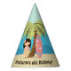 This sunny and bright island beauty design features a cute Hawaiian girl and her pink floral surfboard. The ocean calls this little girl, as she is ready to surf the island waves on this beautiful and sunny beach. This tropical island theme is the perfect design for your little one’s birthday luau and hula.