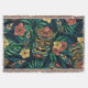 Hawaiian Tiki Mask Tropical Pattern Throw Blanket