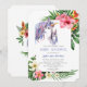 Exotic Baby Shower card design featuring cute watercolour baby and mother unicorn, exotic Hawaiian tropical flowers frames. Use Personalise tool to add your info, change fonts, font's colours. For matching items, please, visit my Unicorn Collection.