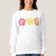 Sweatshirt features an original marker illustration of a row of pink, orange and yellow tropical Hawaiian hibiscus flowers.