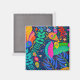 Hawaiian garden, tropical jungle, Caribbean parrot, red blue yellow, green pink violet, floral foliage, hidden parrot, tropical colours, Virginia Vivier, Vagabond Folk Art, aloha design, indie art, modern boho decor, tropical decor.