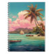 Hawaiian vintage island, palm tree, boat, pink notebook