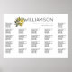 Wedding reception seating chart poster with Hawaiian plumeria flowers. Pretty white flowers with yellow centres match our stationery set. Black text on white paper with many templates to customise with names. Large printed text at the top for the newlywed names and wedding date. Seat guests alphabetically when planning a large reception.
