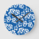 Hawiian Blue Flower Pattern Round Clock
