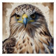 A Hawk in a detailed watercolor with expressive eyes is portrayed against a soft, blurred background. The natural colours enhance the lifelike appearance.