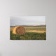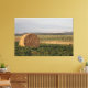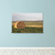Hay Bales In A Field With Mountains At Sunrise Canvas Print