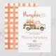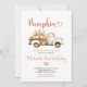 Hay Leaves Pumpkin Fall Birthday Party White Truck Invitation