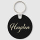 Ein sehr schöner edler personalisierter Button Schlüsselanhänger im whitegold Lettering Look auf schwarz für Hayden.
