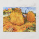 A fine art postcard with the post-impressionist painting by the Dutch artist Vincent van Gogh (1853-1890), Haystacks in Provence (1888). A landscape of two stacks of hay in a French village.