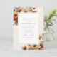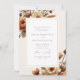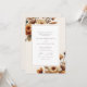 The invitation features a sophisticated layout with a soft cream background. At the top and bottom edges, delicate watercolor flowers in warm shades of orange, cream, and muted browns frame the text, adding a natural and organic touch to the design. The floral arrangement is artfully positioned to create a balanced and harmonious look, enhancing the invitation's refined aesthetic.