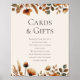 A thoughtful and cheery wedding sign for cards and gifts with bold retro typography in white on a bright yellow background with a little poem that says "Thank you for the gifts, so kind and true