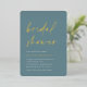Invite guests to celebrate the bride to be with these modern and minimal bridal shower invitations with stunning rose gold foil accents. Simple design features "bridal shower" in casual handwritten script on a dusty turquoise teal background, with your event details aligned at the lower left in modern off white lettering.