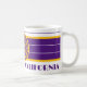 Coffee Mug 11oz. white with purple and gold concentric-circles design with "HOLLYWOOD, CALIFORNIA CENTER OF THE UNIVERSE" and "HOLLYWOOD, CALIFORNIA" at the bottom. With the Great Seal of California in the centre. This design is a shout-out to the incomparable city, Hollywood, California.