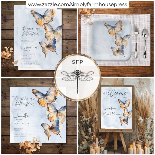 He Gives Me Butterflies Blue Modern Bridal ShowerDesigned by Kathe Santillo