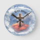 He Has Risen Rugged Cross With Clouds Round Clock
