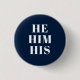 He, Him, His, Gender Pronouns Lgbtq pride navy blue and white button, pin