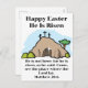 Happy Easter He Is Risen Empty Tomb—Three Crosses Cartoon Art Postcard. KJV Bible Verse Matthew 28:6 "He is not here: for he is risen, and he said, Come, see the place where the Lord lay. Modern black typography.