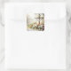 He is Risen Matthew 28;6 Cross with Easter Lilies, Tulips and Easter Eggs Square Sticker Envelope Seal