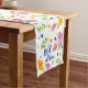 A cheerful Easter table runner with He is Risen Alleluia and watercolor florals.