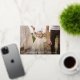 Elegant religious Easter card featuring your horizontal photo with "He is Risen" displayed in a gold foil calligraphy script. Personalise the front of the Easter photo card by adding a custom greeting, your name, and the year. Add your typed or handwritten message to the inside of the folded Easter card. The back of the gold foil Easter card displays a beautiful white floral pattern on a light blue background (background colour is editable).