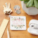 An elegant floral bouquet of watercolor blush pink peonies and ivory roses frame this lovely religious Easter keychain. He is Risen is written in beautiful peach pink for the bible verse Matthew 28:6. Pretty gift for a church or Christian friend.