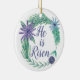 He is Risen. A beautiful religious Christmas ornament with a beautiful floral wreath of purple and green. These lovely watercolor flowers rejoice in Jesus Christ. Pretty Christian gift.
