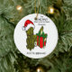 A drawing of the elder god Cthulhu wearing a Santa hat and holding a present with the words "He knows when you've been naughty, and he approves!".