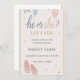 Adorable gender reveal notebook with pastel pink and blue decorations. Features cute baby-themed graphics and the phrase He or She?. Perfect as a party guest book, keepsake journal, or baby shower gift