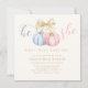 Unveil the surprise of your little one’s gender with our He or She Gender Reveal Party Invitation. This modern design features charming pumpkins representing the anticipation of whether it's a boy or girl, nestled in a beautiful watercolor scene. The elegant combination of pink and blue with gold accents and a coquette bow adds a touch of sophistication, perfectly capturing the joy and excitement of your fall-themed celebration.