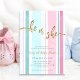 Get ready for your modern, He or She Pink and Blue Gender Reveal party with these invitations! With its pink and blue design, this invitation is perfect to invite your guests to find out if your little one is a boy or girl. Whether your party is in the summer, spring, winter, or fall, this invitation perfectly fits your occasion!