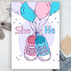 He or She Sneakers Pink Blue Balloon Gender Reveal Invitation