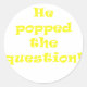 He Popped the Question Classic Round Sticker