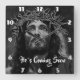 HE`S COMING SOON Jesus looking into heaven Square Wall Clock