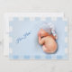 Sweet baby boy birth announcement with blue gingham background, Modern design. Blue and white