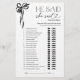 Stylish and timeless, the Black Bow Monochrome “Who Was First” He Said She Said Game Card features a hand-painted black ribbon bow in the top corner, paired with chic typography and bold black lips and moustache icons for a clean, modern look. Guests can circle their guesses for who was “first” in various relationship moments, making it a fun and interactive bridal shower game.