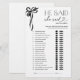 He Said She Said Black Bow Bridal Shower Game