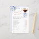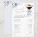 A fun and elegant bridal shower game designed with a refined martini glass illustration, soft blue bow details, and delicate floral accents.