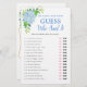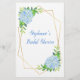 This bridal shower game is a He Said, She Said guess who said it game. It features watercolor blue hydrangea flowers, foliage and faux gold geometric design. Personalise the back of the card with the bride's name. Matching products available.