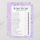 This version of "He Said, She Said" showcases a pristine white background adorned with a captivating border of delicate botanical leaves in a soft, light purple hue. The design adds a touch of elegance and nature-inspired beauty to your bridal shower, creating a visually stunning game that perfectly complements the joyful ambiance of the event. Moreover, the back of the game features the same enchanting botanical leaves border, providing a cohesive and aesthetically pleasing experience for your guests.