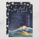 Modern Vintage Elegant Wedding Bridal Shower Game Cards Template - Blue Green and Faux Gold Foil Watercolor Mountains Landscapes Scenery.