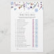 Bursting with whimsical charm, the Wildflower Cascade “Who Was First” He Said She Said Game Card features a vibrant arrangement of watercolor wildflowers, wisteria, and greenery draping elegantly from the top. Guests can guess which partner was “first” in sweet relationship milestones by circling the rose lips or soft blue moustaches, sparking laughter and conversation.