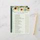 A stylish and chic bridal shower game design perfect for the country-style bride-to-be. Our design features our hand-painted watercolor golden yellow sunflowers, white cream florals, and natural greenery arranged to create this elegant country-style arrangement. "Bride Or Groom Guess who said it" is displayed along the top with. The golden yellows, creams, and forest green colour palette create an elegant rustic country-style look. yellow Watercolor watercolor floral sunflowers and greenery frame the top. The reverse side features our complementing watercolor yellow sunflower pattern. All florals are hand-drawn original artwork by Moodthology.