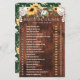 A stylish and chic bridal shower game design perfect for the country-style bride-to-be. Our design features our hand-painted watercolor golden yellow sunflowers, white cream florals, and natural greenery arranged to create this elegant country-style arrangement. "Bride Or Groom Guess who said it" is displayed along the top with. The golden yellows, creams, and forest green colour palette create an elegant rustic country-style look. yellow Watercolor watercolor floral sunflowers and greenery frame the top. The reverse side features our complementing watercolor yellow sunflower pattern. All florals are hand-drawn original artwork by Moodthology.