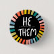 HE / THEM Pronouns Rainbow Handlettered Pride 3 Cm Round Badge