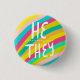 HE/THEY Pronouns Colourful Handlettering Stripes 3 Cm Round Badge