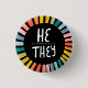 HE / THEY Pronouns Rainbow Handlettered Pride 3 Cm Round Badge