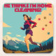 You're not home cleaning, you're out putting in the intervals.  This funny design shows an old fashioned looking woman running in the mountains in the style of a vintage travel poster.