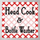 Head Cook and Bottle Washer funny cooking slogan. Zesty food humour in retro letters on a red and white lattice background for a vintage look. Fun food and kitchen humour sayings for cooks.