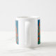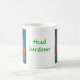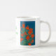A white mug for a gardener, with 'Head Gardener' motif and decorated with panels of red wallflowers on a dark blue background.
