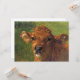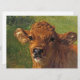This design features a painting by Rosa Bonheur (1822–1899), who was a French artist best known as a painter of animals. It shows a close-up view of a calf on a farm. A calf is a young domestic cow or bull. Calves are generally reared to become adult cattle. The hide of this calf is reddy brown. The animal has beautiful big eyes, and its ears are rigid and alert. The grass of the farm's field can be seen behind the calf. The original artwork was painted by Rosa Bonheur in 1878.